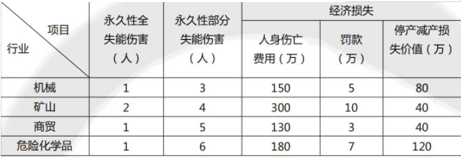 D.危险化学品:直接经济损失180万元,损失日数8700d