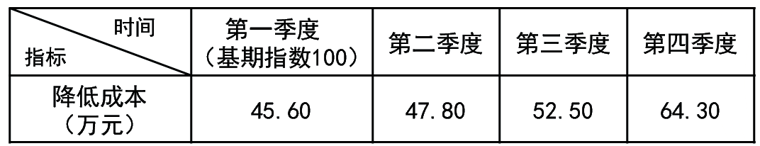 基期数值45.6对应基期指数100;故第四季度成本数值64.3,对应指数为(64.3/45.6)×100=141.01。